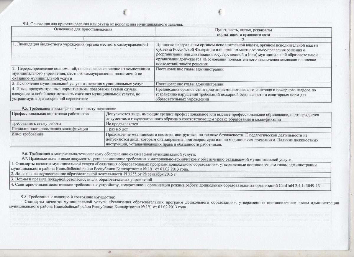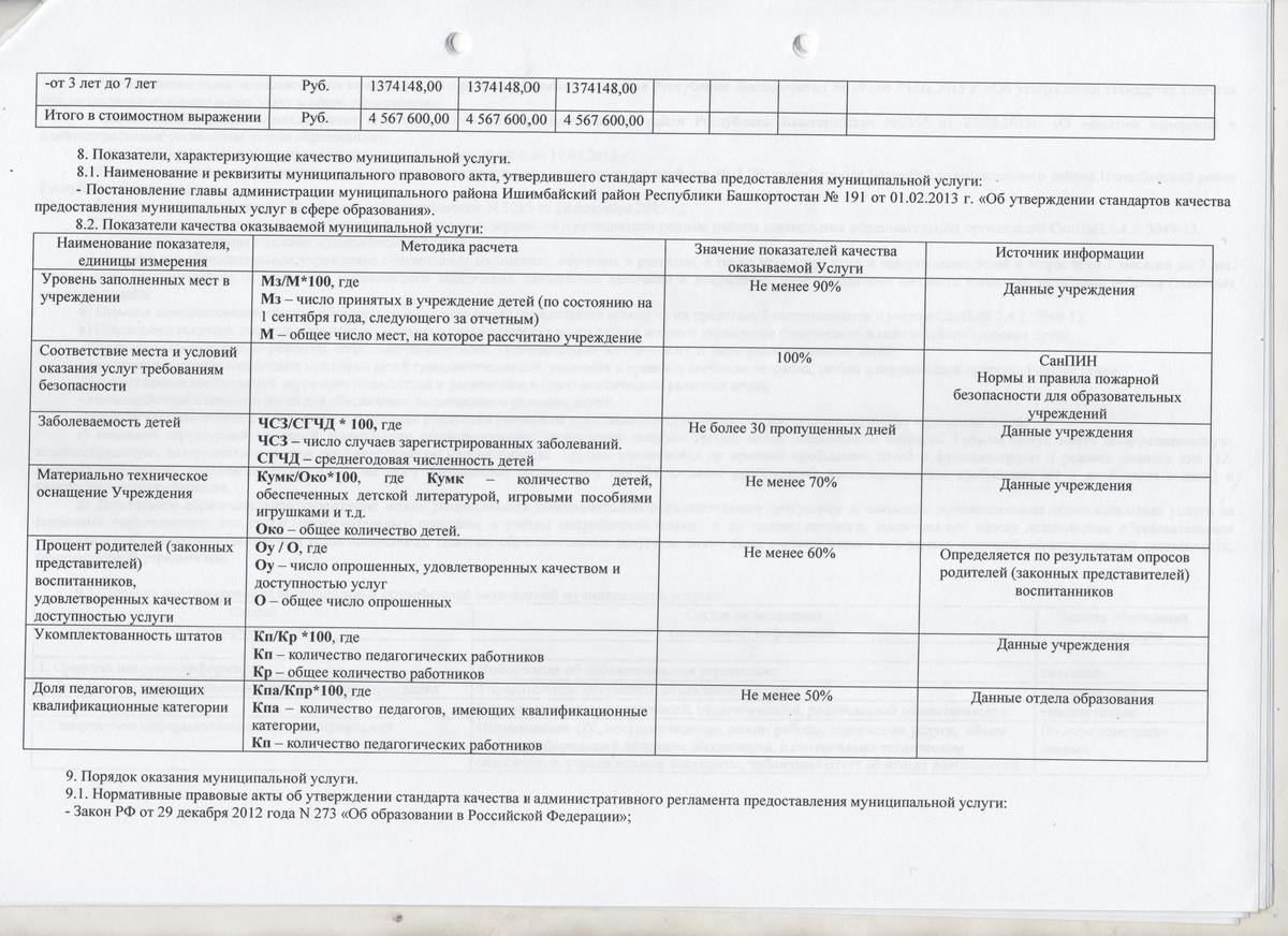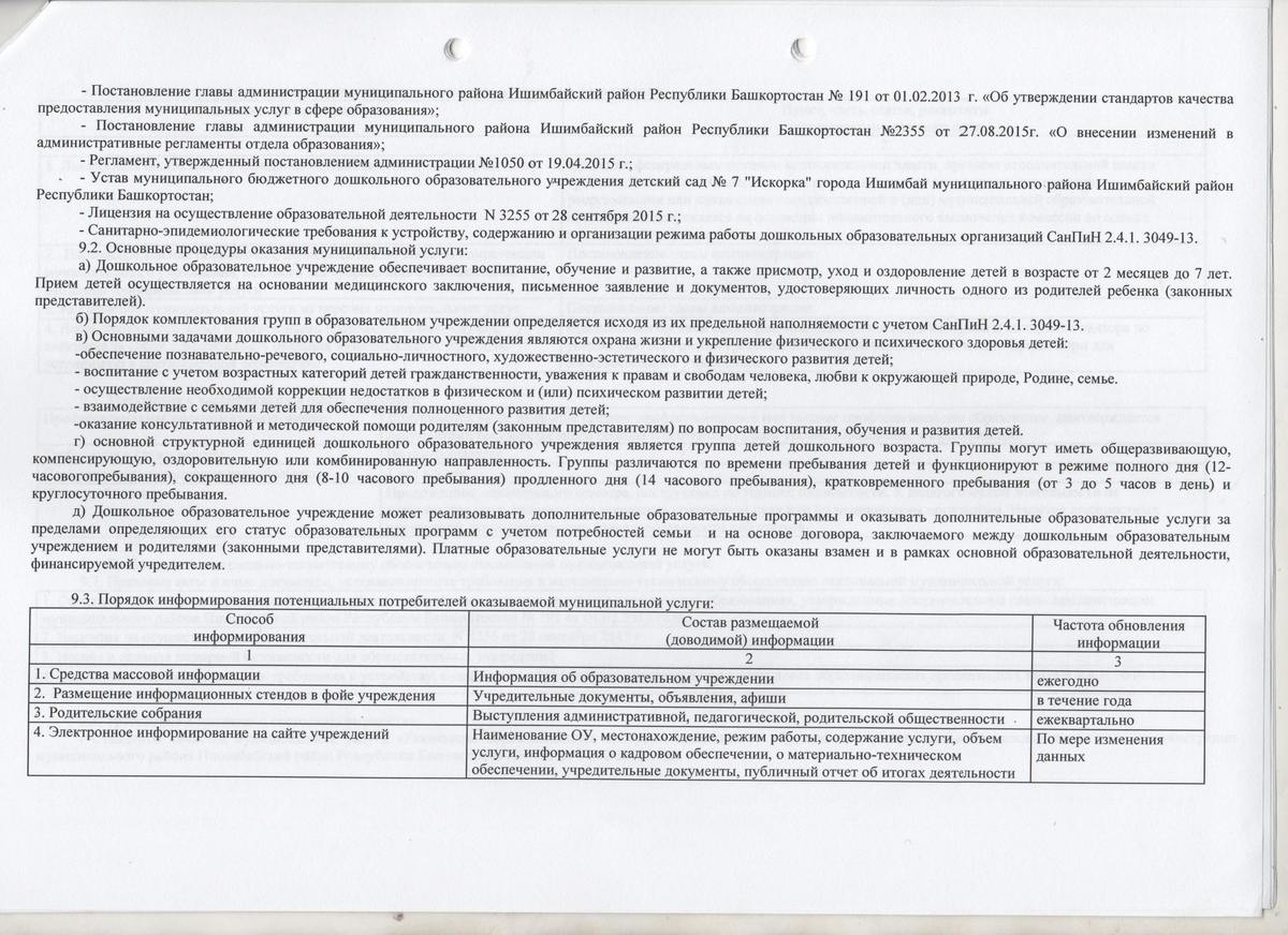 - Стандарты качества муниципальной услуги «Предоставление общедоступного бесплатного дошкольного образования», утвержденные постановлением главы администрации муниципального района Ишимбайский район Республики Башкортостан № 2355 от 27 августа 2015 года
